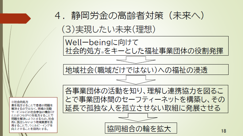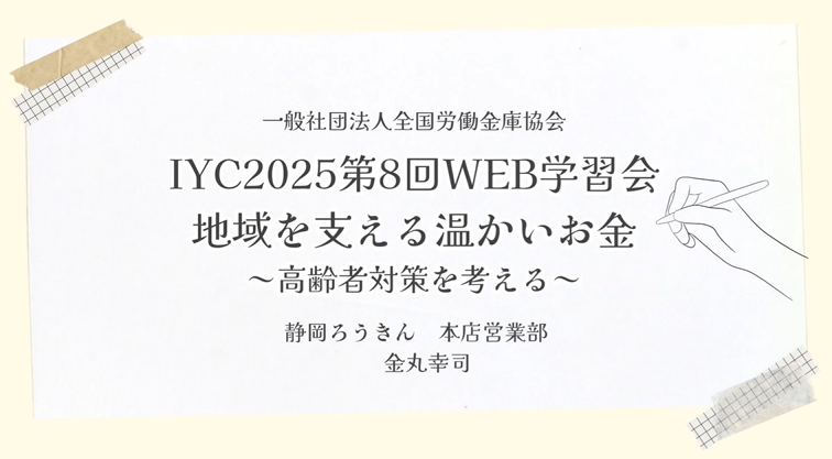第8回WEB学習会では、静岡ろうきんの金丸幸司氏に登壇いただき、「地域を支える温かいお金~高齢者対策を考える~」をテーマに取組みの報告およびトークセッションを行いました。